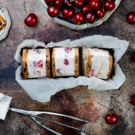 チェリーアイスサンドは北海道産のチェリーのアイスをサクサクのクッキーでサンドしたスイーツです。立方体なので大量に持ち運ぶときも便利です。